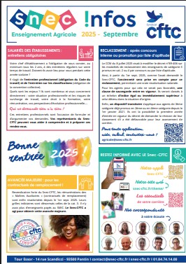 Le Snec-CFTC a déjà alerté le directeur de l’enseignement agricole et participera au 2nd semestre 2025 au groupe de travail ministériel qui se réunira sur ce sujet.